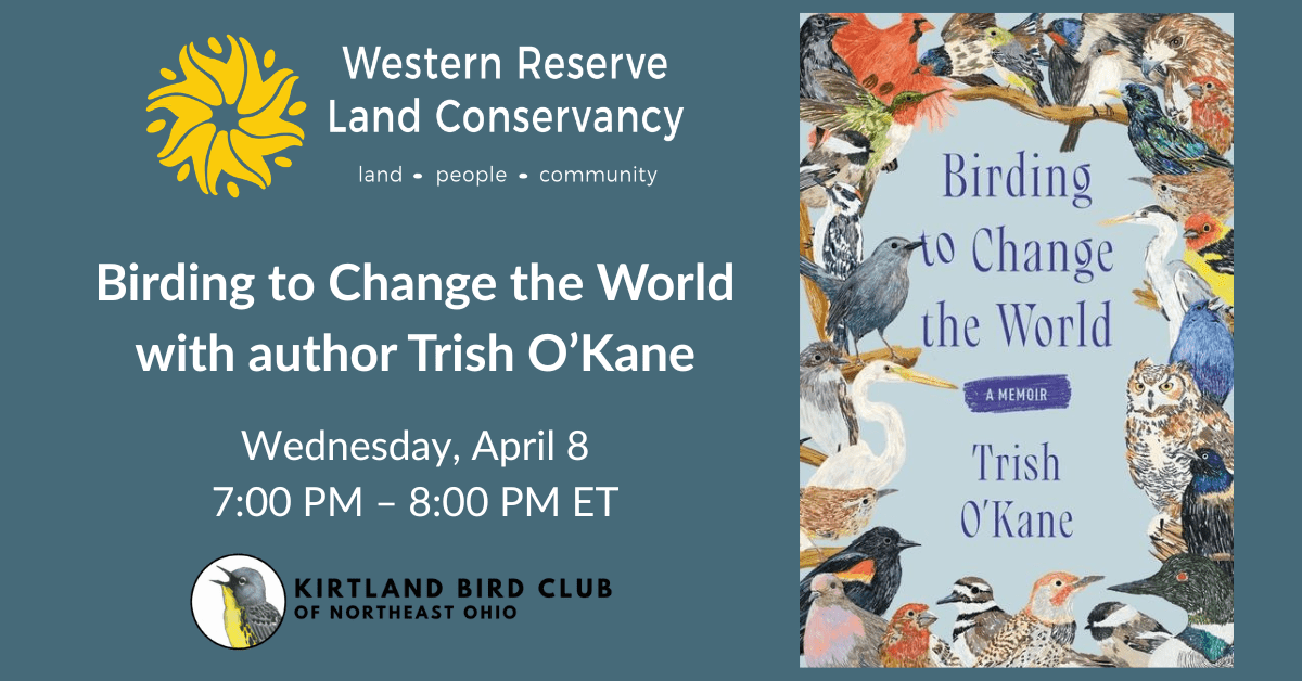 The Land Conservancy is pleased to partner with the Kirtland Bird Club to host an engaging conversation with Trish O’Kane, author of Birding to Change the World. In this inspiring program, O’Kane will share how birds helped transform her own life and what they can teach us about the healing power of nature. The discussion will also explore the importance of ensuring that children have meaningful opportunities to connect with the natural world and how communities can advocate for more nature in young people’s lives.